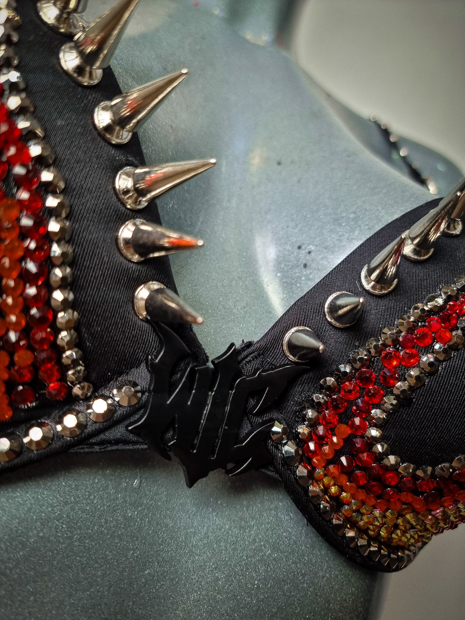 Hand-stoned with multi-tonal rhinestones